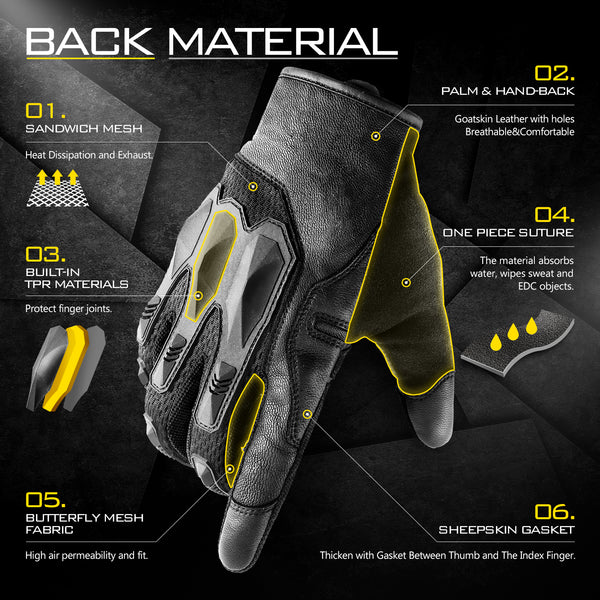 Gloves need to breathe well. If they don't, the inside of the gloves will become hot and sweaty, making for irritated hands and fingers. While leather gloves offer great protection and durability, they don't breathe very well. Nylon and polyester gloves, on the other hand, are well ventilated, absorb moisture and help to reduce sweating.