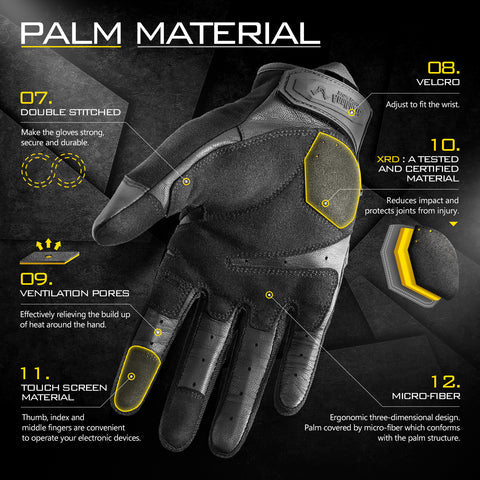 - The double-stitched palm of the tactical glove ensures heavy protection from abrasion. The durable microfiber is abrasion resistant and light in weight. The mesh fabric helps to dissipate heat and keep your hands dry, with high breathability. The ventilation holes effectively relieve the heat build-up around the hands and allow the palms to move freely.
