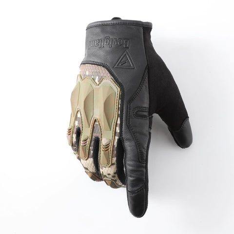 - ZG-003 是一款功能非常全面的手套。它采用真皮、TPR、XRD 材料,并配有真皮内衬垫等。材料的巧妙布局使大指和食指更加灵活,这在射击和骑行等运动中非常实用。尤其值得一提的是,内置的 TPR 材料能够有效降低手套的冲击力,避免运动损伤。
