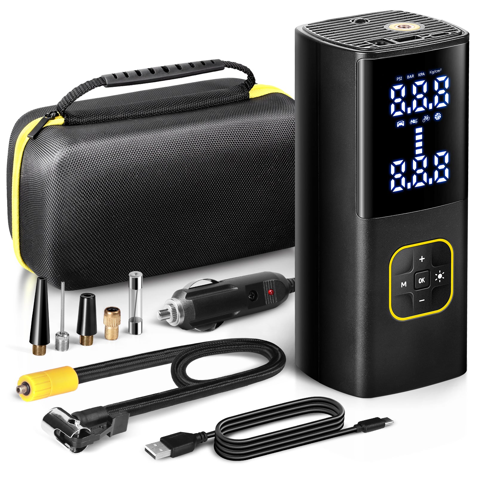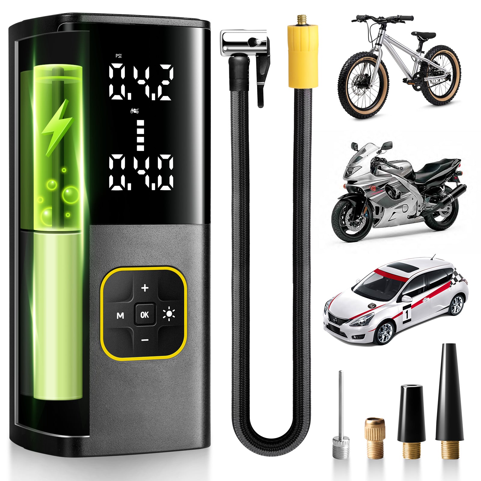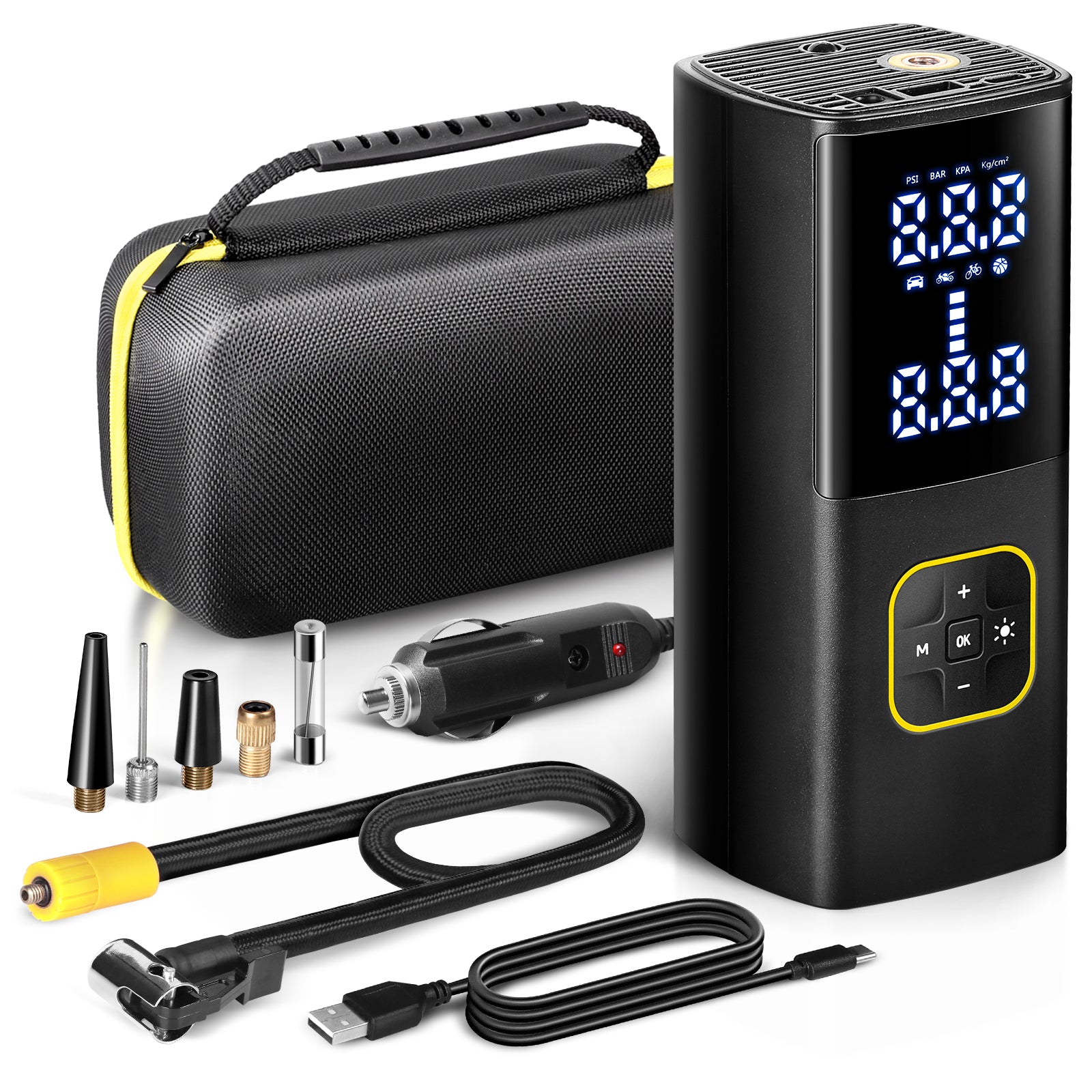 Zune Lotoo 充电式轮胎充气泵 便携式车载空气压缩机,150PSI 电池供电 无绳打气筒 带数字压力计和自动关闭功能,适用于自行车 摩托车 电动车 球类